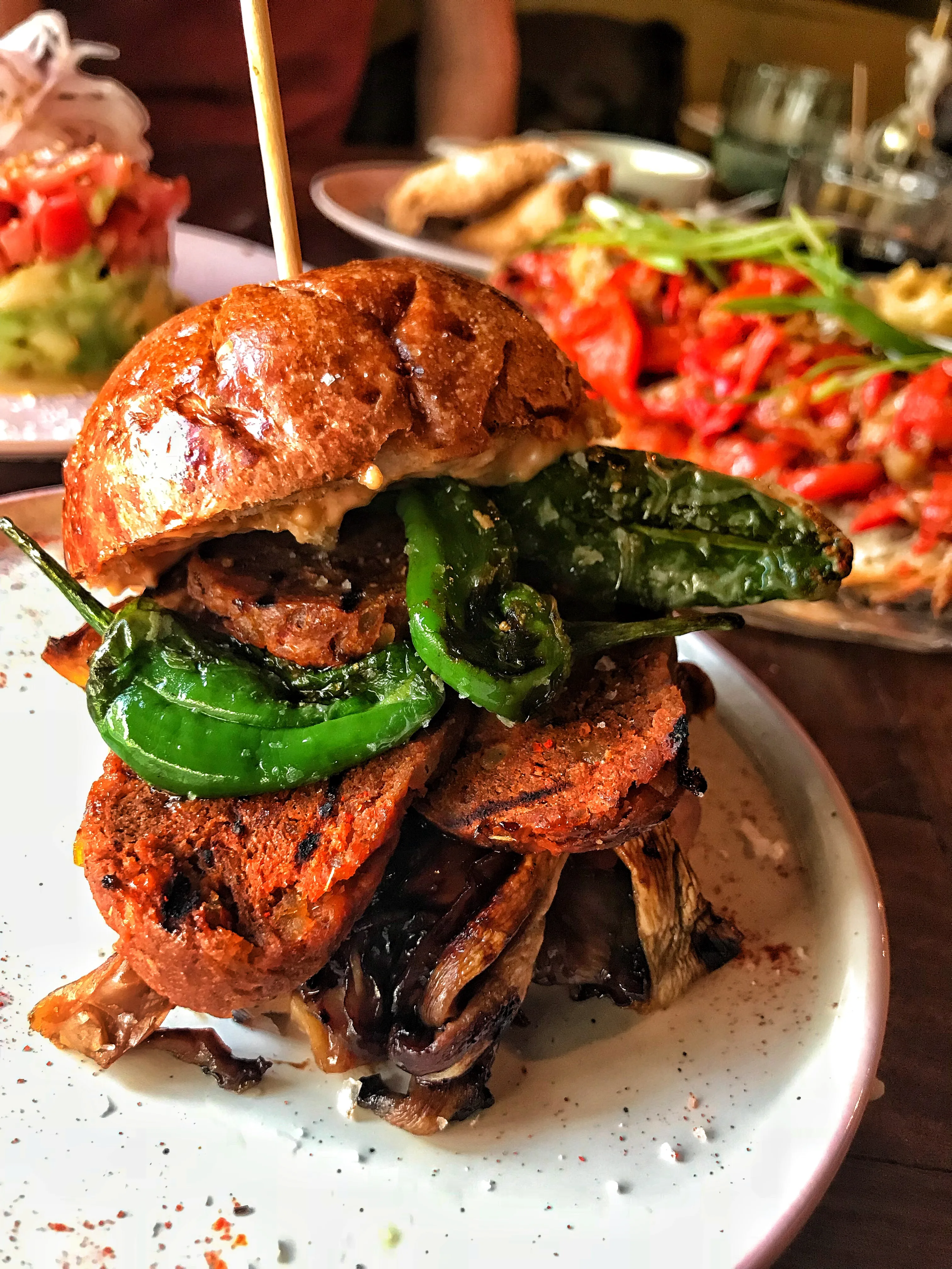 🍔 Vegan slider burger with homemade “chorizo”, mushrooms, padron peppers & red onions in a brioche bun (Obvs still managed to find a burger). Loved this – the sweet bun contrasted by the spiced “chorizo” and the smokey mushrooms was delicious! I took the peppers out though as I’m not a huge padron pepper fan