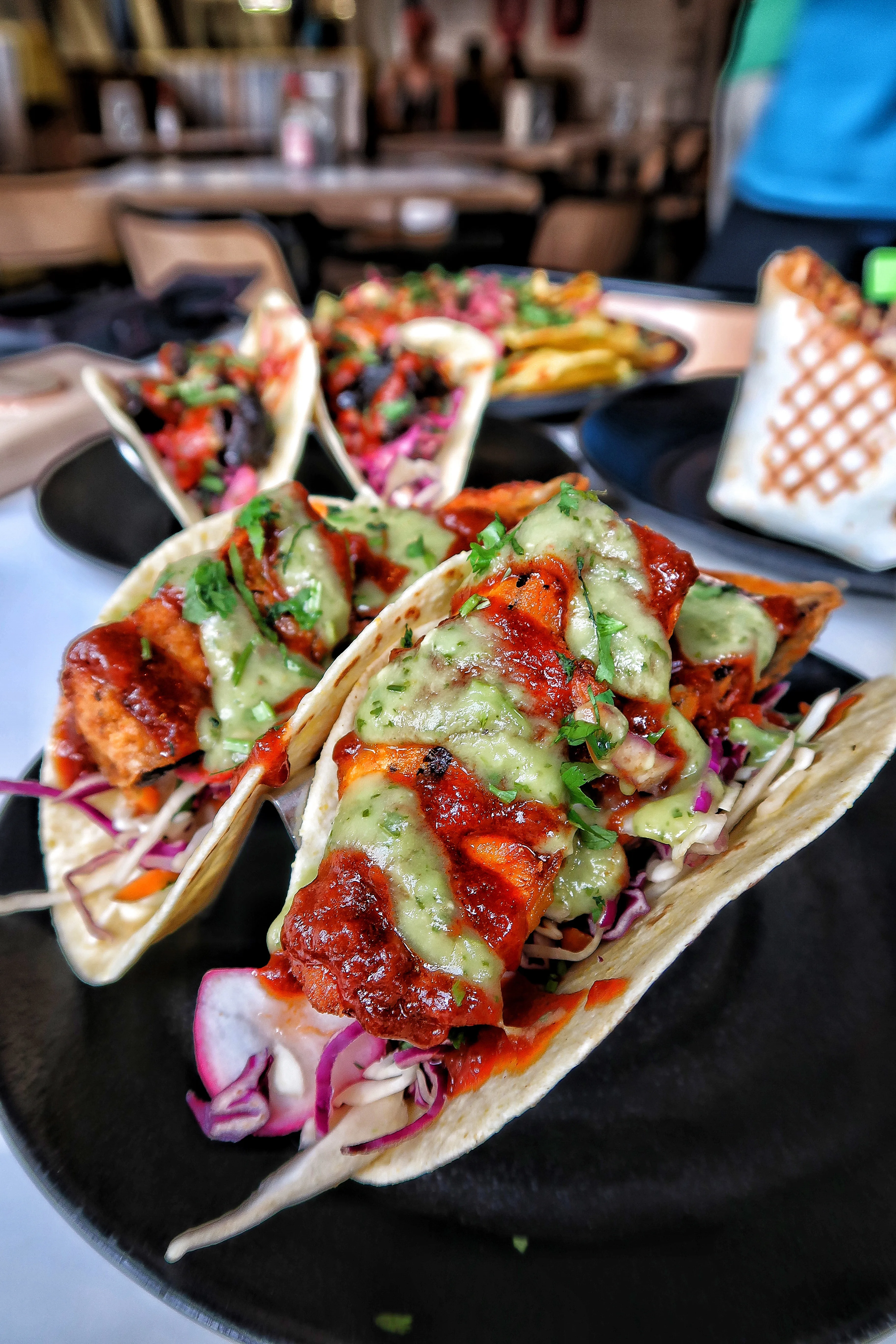 🌮 Aubergine tacos – The aubergine was nice but despite a little more spice, they were a bit bland. I felt that the slaw took away from the flavour rather than added to it