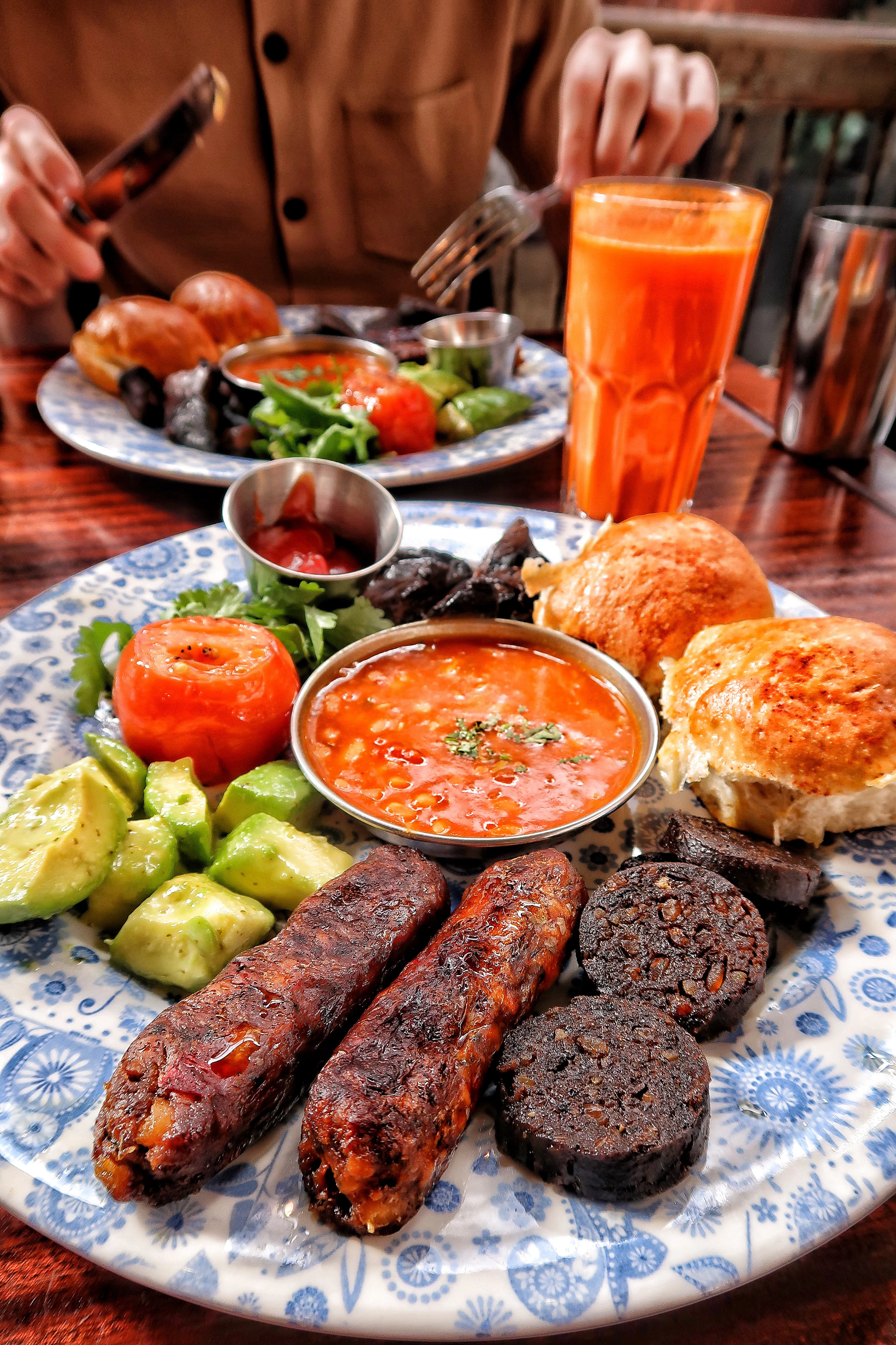 Obvs celebrated the new name change the best way I know how: With food 🥘 I checked out @dishoom’s new vegan menu. @jolley_chris and I both ordered the big breakfast with sausages, “black pudding”, fresh avocado, those famous buns, a roasted tomato, spiced beans & juicy mushrooms 🤤 .