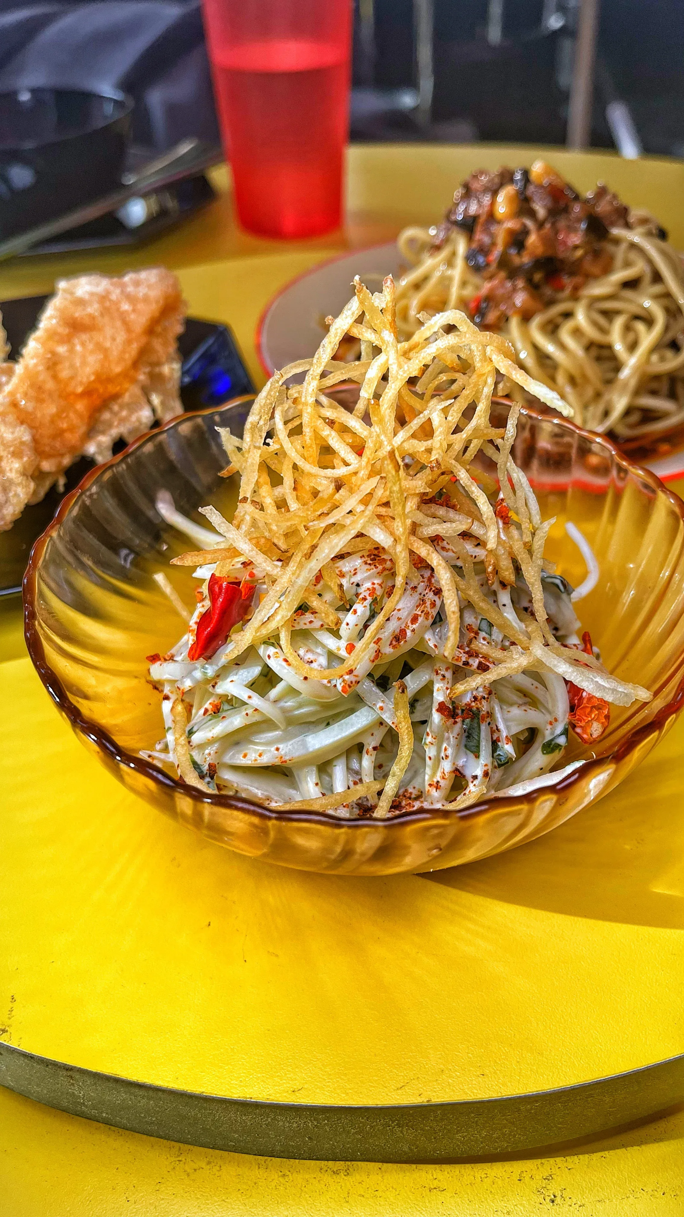 🤷🏼♀️ So, what’s the difference? You ask. Well, it’s bigger and unlike MC which focused solely on Sichuan dishes, this menu expands to include Cantonese, Yunnan & Shaanxi dishes as well as flavours from Puerto-Rican, Portuguese and American to reflect owner Julian’s upbringing. Oh and they’ve got a disco loo. Need I say more? 🕺🏻
