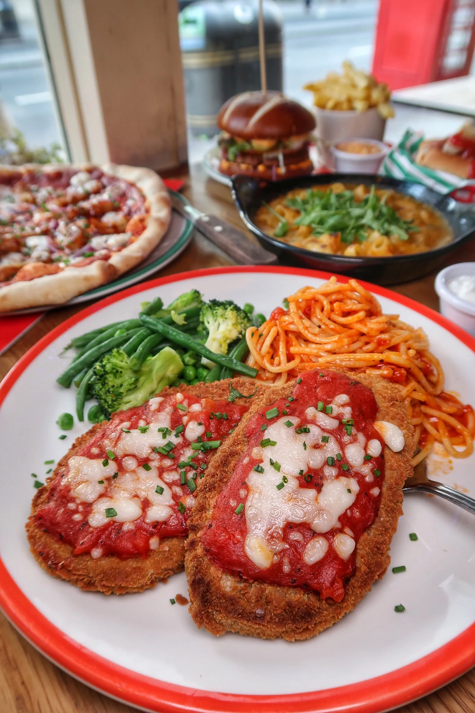 🍝 I Ain’t No Chicken Parmigiana – Crispy vegan schnitzel topped with Neapolitan tomato sauce, vegan mozzarella, served with spaghetti & veggies £13.29 – Dish of the day! The schnitzel was breaded perfectly. The sauce & cheese on top were delicious. The spag was nice but could’ve used a bit more punchy flavour