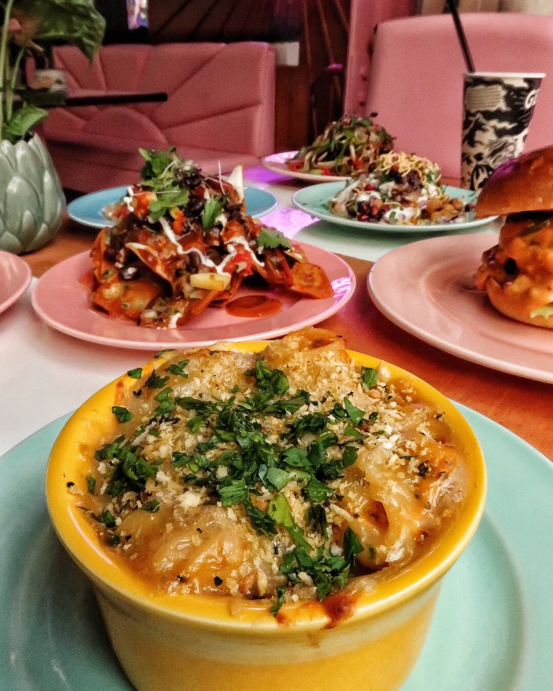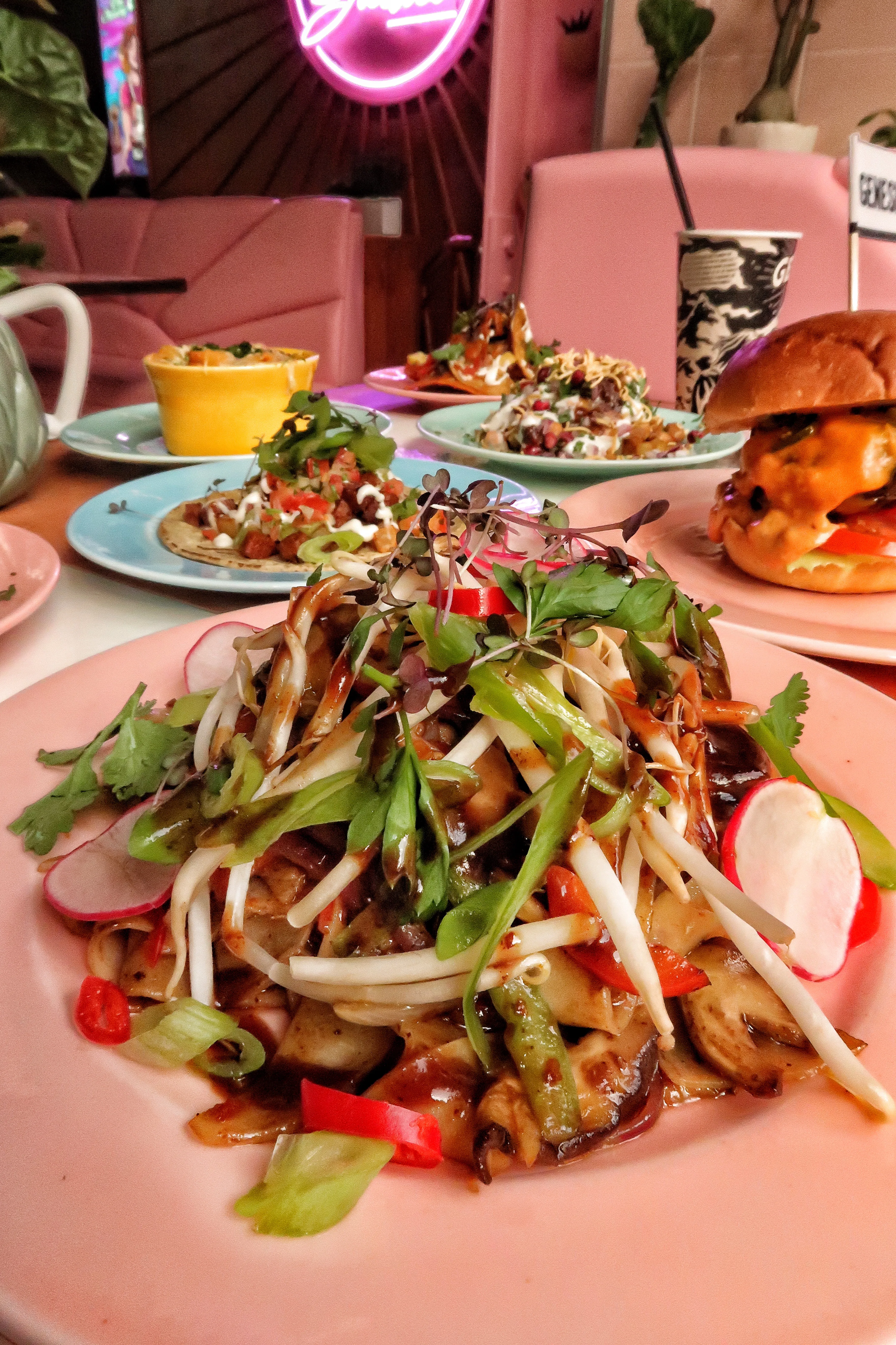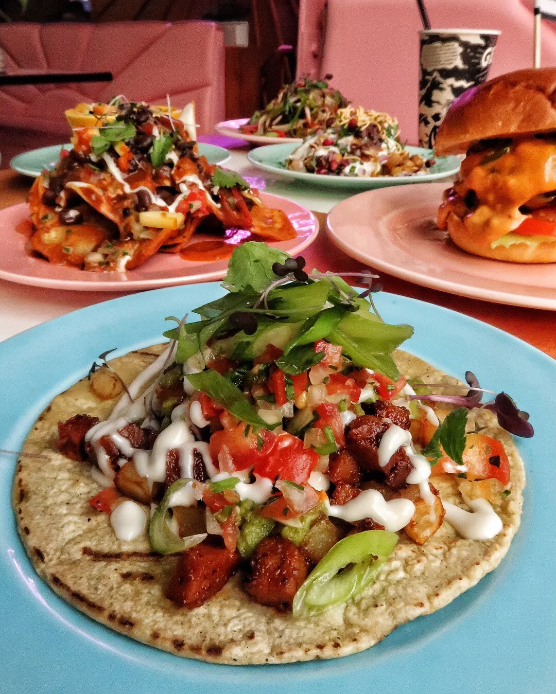 You can choose from a number of dishes including a delicious charred cauliflower dish, Chilaquiles rojos, Aloo chaat 🇮🇳 Smoked “chorizo” tacos 🌮 the genesis burger 🇺🇸 🍔 German sauerkraut hotdog 🌭 , Kamut mac & cheese cheese 🧀 and Char kway teow Malaysian noodles 🍜 .