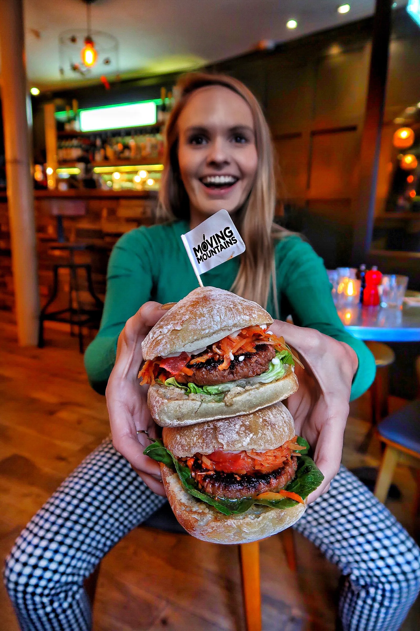Expect a ciabatta bun topped with butter lettuce, @rubiesintherubblemayo, @movingmountainsfoods B12 patty, kimchee, cashew butter & green chilli salsa 🍔 (Scroll for more burgery goodness) 🌱