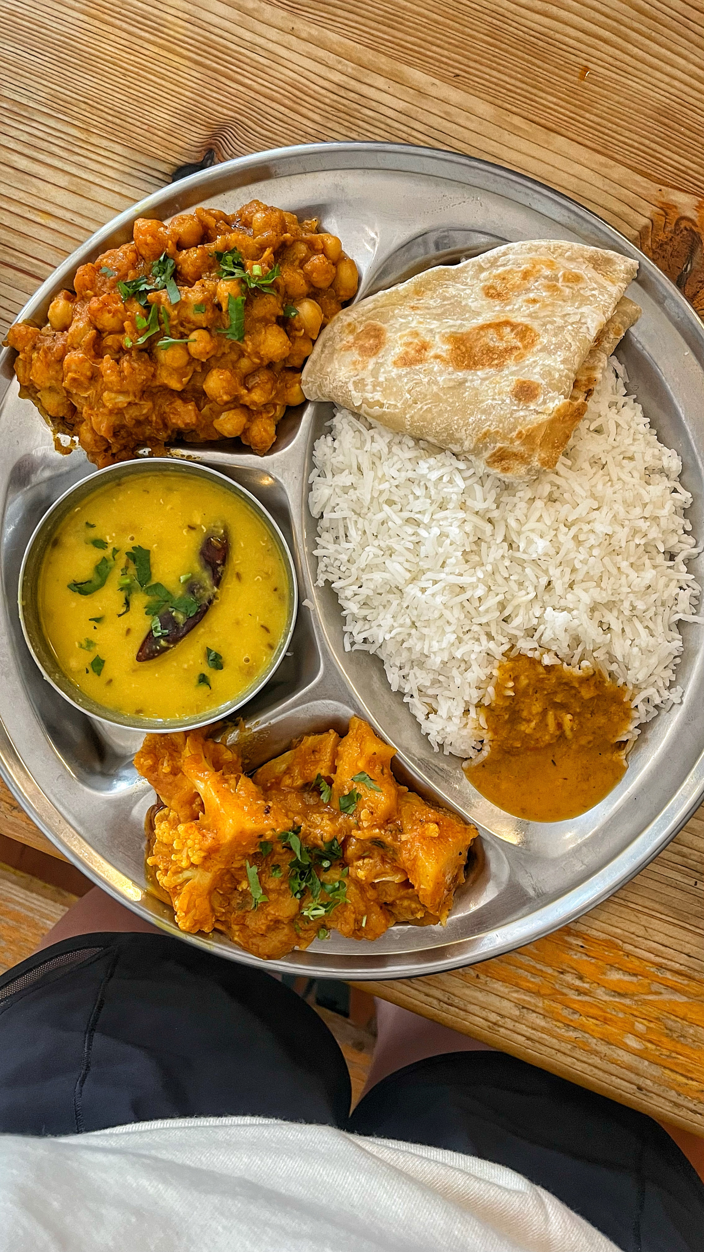 🍛 Vegetable Thali with dhal, rice, paratha, curries & tomato chutney
