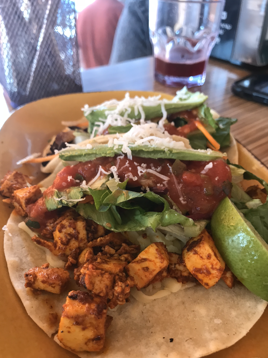 This spiced “chicken” bao from @vegiebar was great! The burrito for my main wasn’t too bad but the small plates stole the show