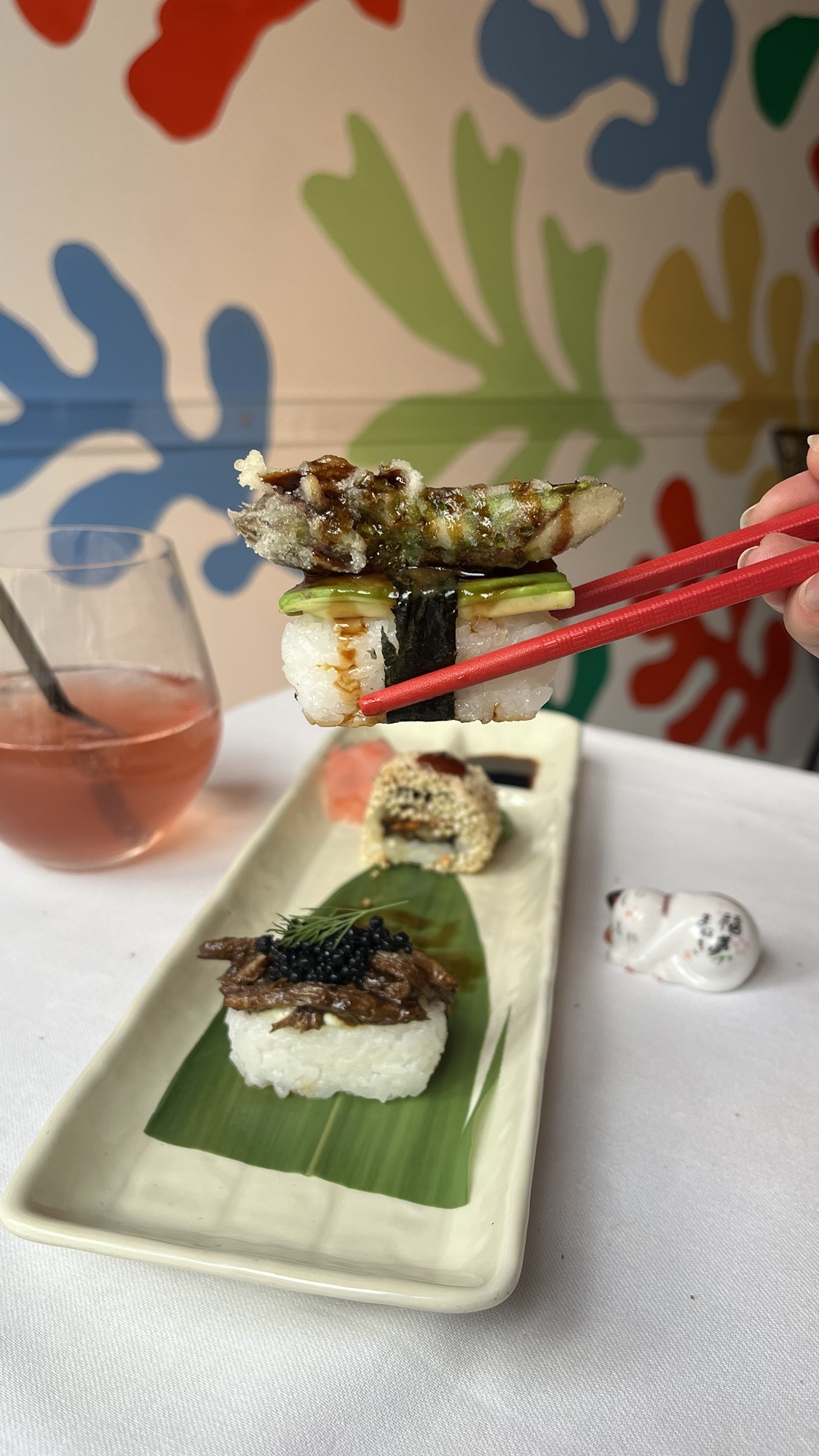 🍣 Sushi selection – aubergine & cumin, asparagus & avocado, “meat” & black kelp “caviar”