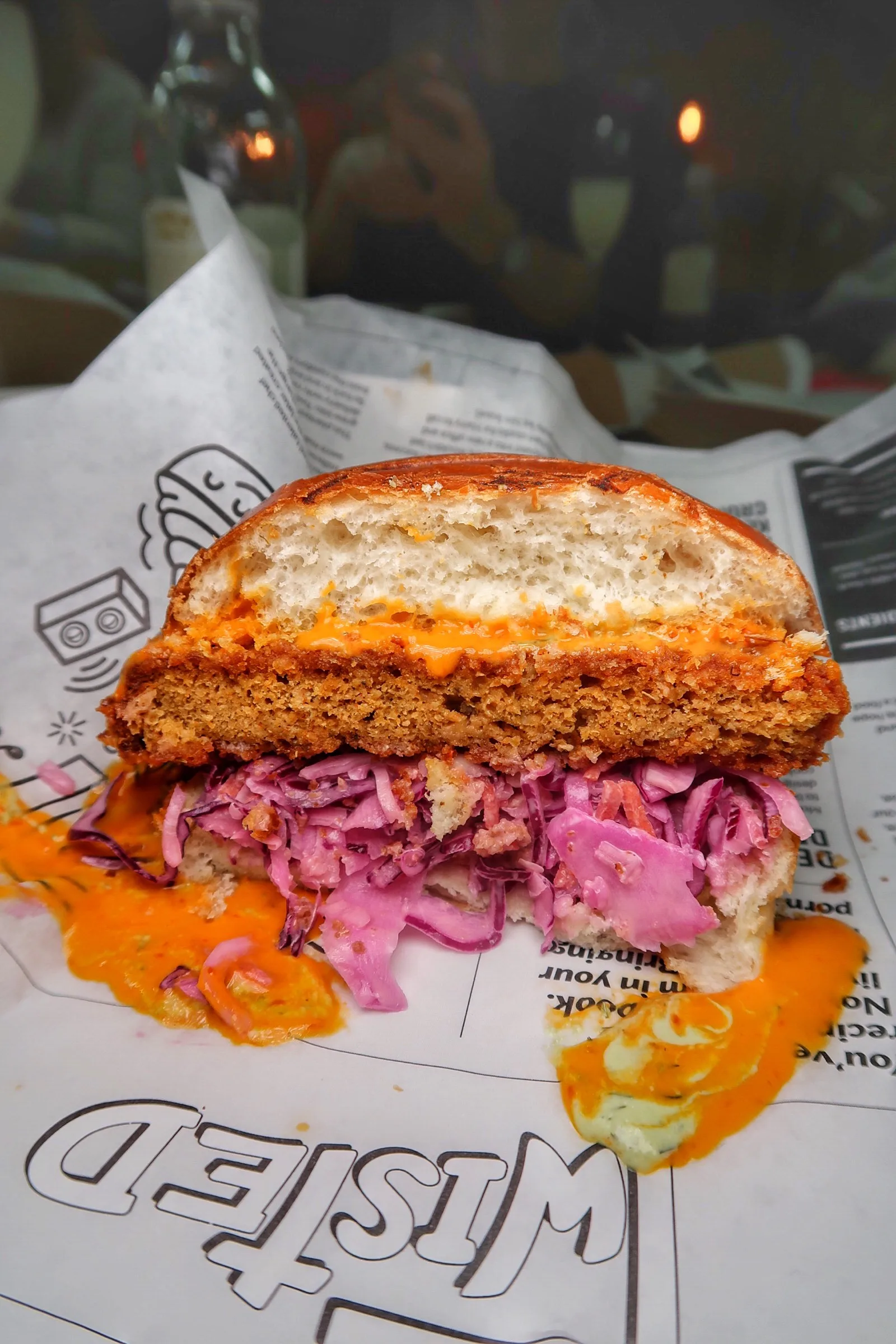 ✏️ This is currently my favourite vegan chicken burger 🍔 The ‘chicken’ is the perfect consistency and the mayo & lettuce the perfect fillers. There’s a hint of avo and chilli jam but not enough to overpower the burger. Everything in this just works for me! 👏🏼