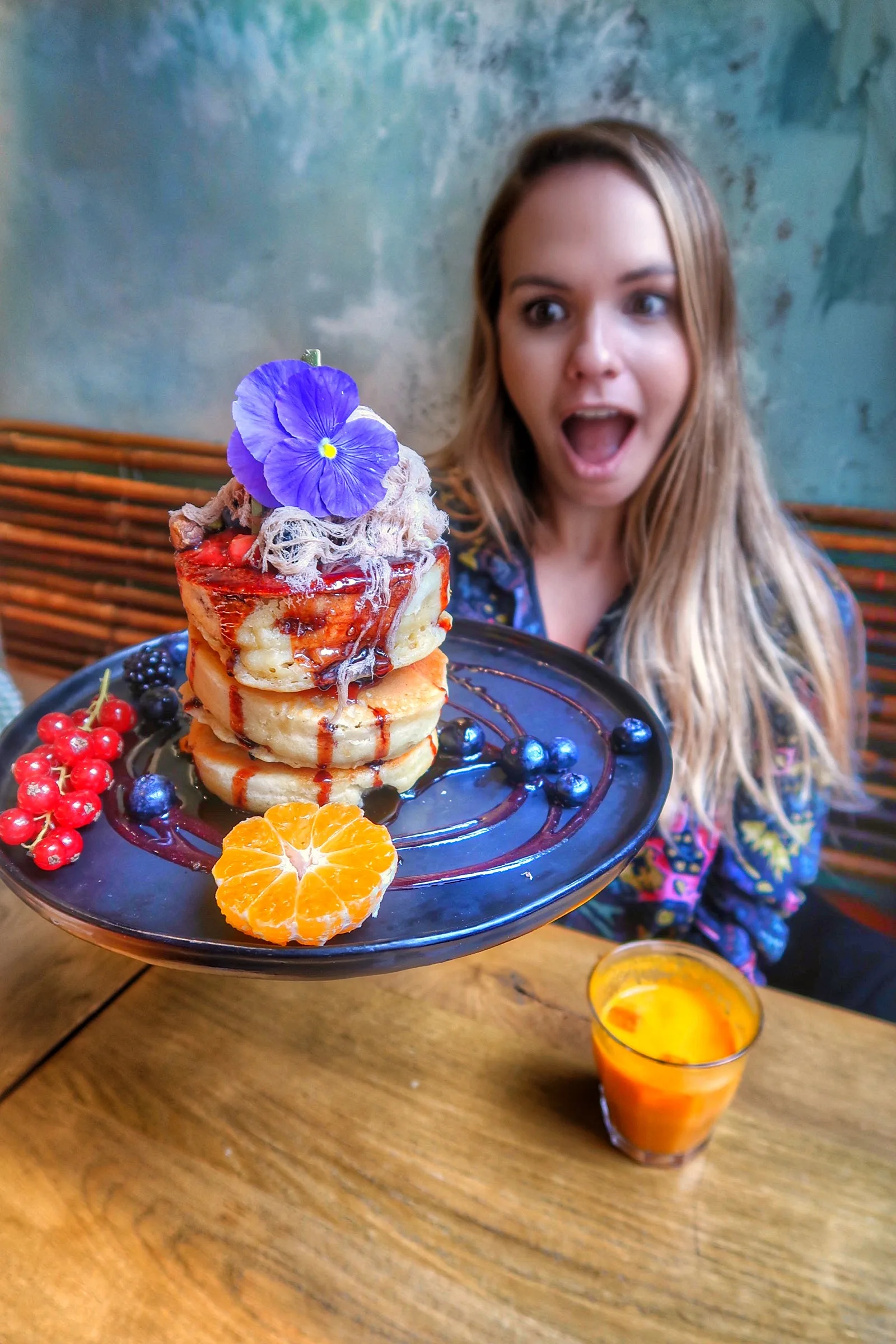 - Classic Stack – This is a huuuuge portion – three chunky pancakes which are crispy on the outside and fluffy on the outside. The candy floss was a bit heavier and more grainy than regular candy floss. I didn’t mind it but wasn’t in love with it. I would’ve liked the pancakes themselves to be a bit fluffier and less cakes / chewy and the portion size was a little too big, I thought. I loved all of the fresh fruit and the raspberry jam but by the time you get to the last pancake, the toppings had run out a little which left them a bit dry at the end.