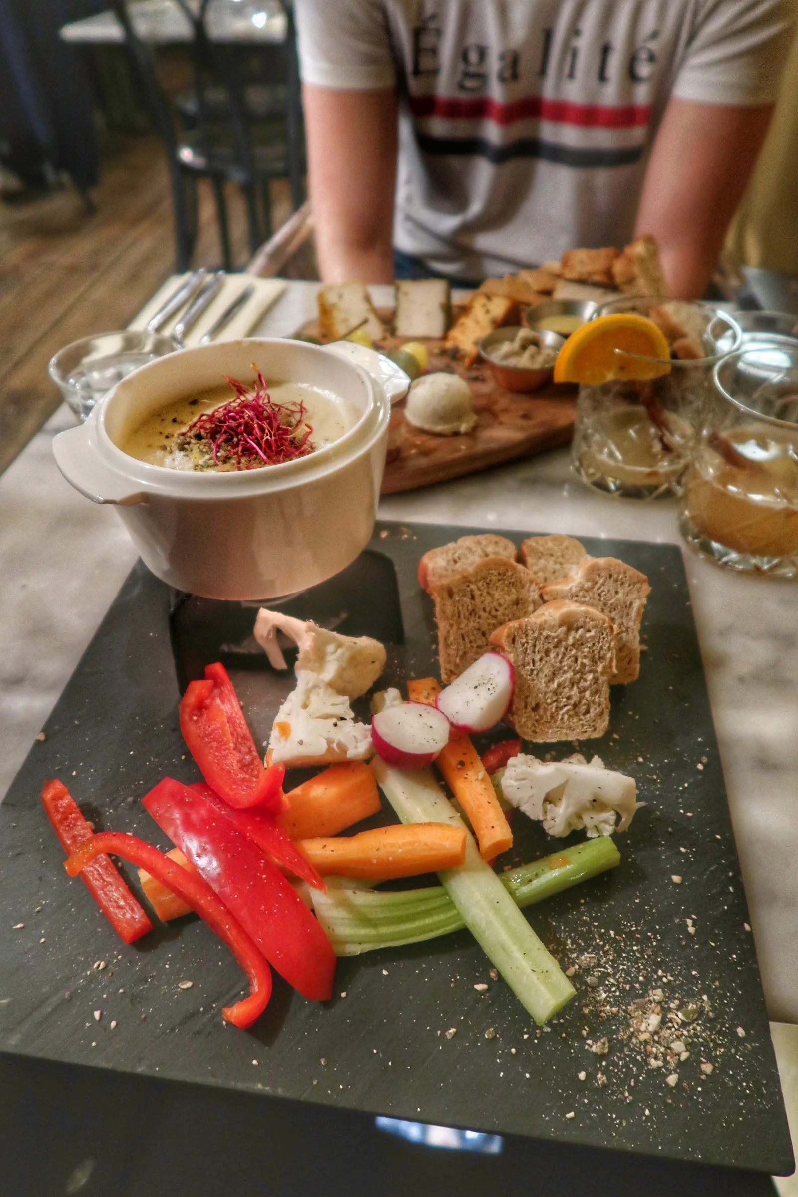 - Bless You Cashew fondue – I was quite disappointed with this dish. I really liked the fondue in parts but not in others. It was very rich and very creamy but I didn’t love the flavour. I would’ve liked it to be cheesier! I also wanted more bread and less raw veggies to dip in.