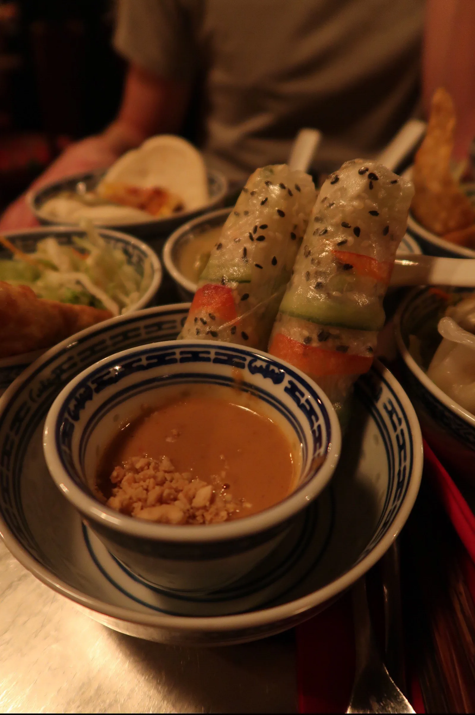 The sweet sauce which accompanied the crispy dumplings, the perfectly thick texture of the dim sum, the ridiculously nice mango sauce, the prawn-like texture of the soy balls, the fresh rice paper rolls with a divine hoisin-peanut dip, the crispy wantons which reminded me of samosas (in the best way) – Everything about this meal was brilliant. This was our favourite restaurant from our trip!