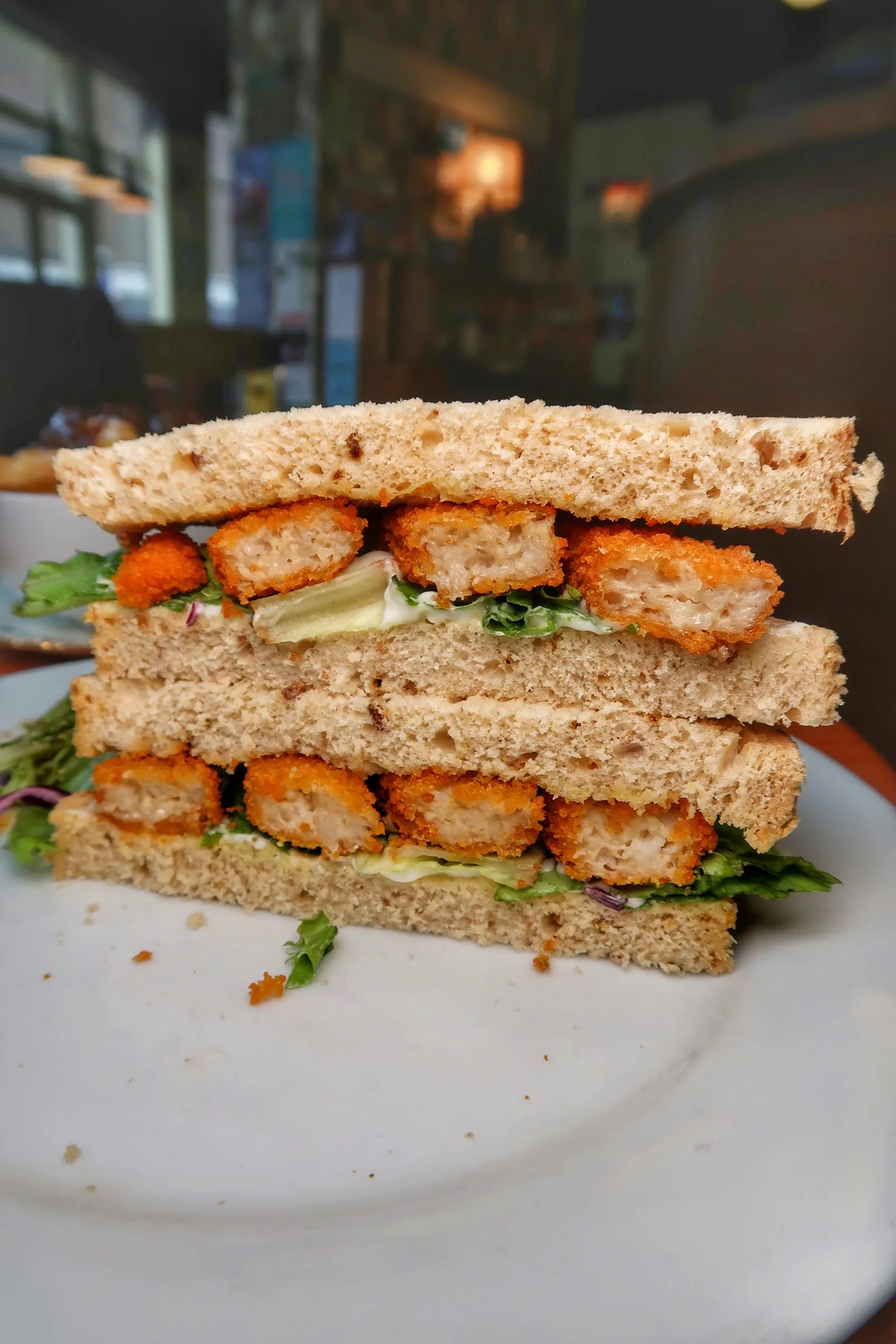 - Fish-like finger sandwich with mayo on granary bread – £5