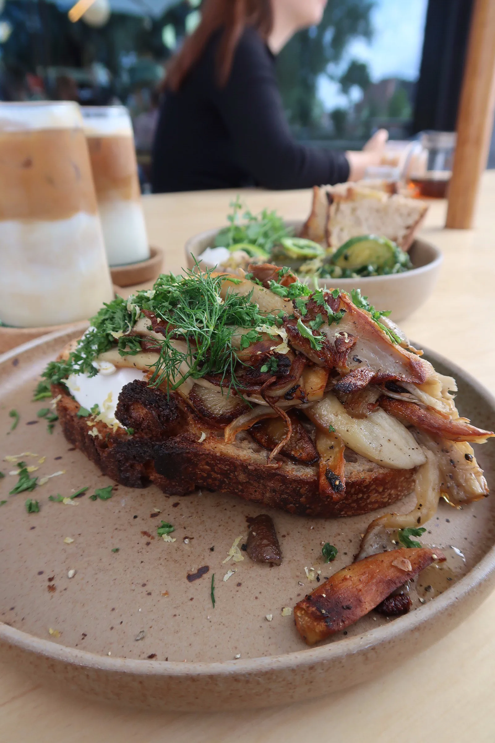 - Pan-fried wild mushrooms on toast with vegan creme fraiche – £9