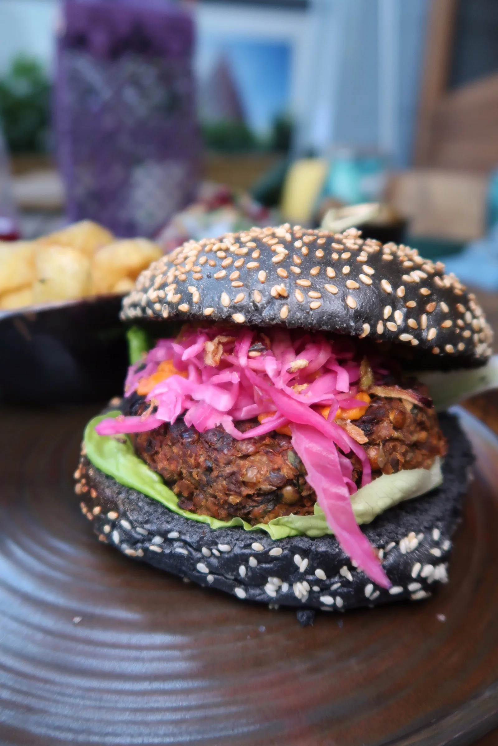 - Indian Mushroom Balti Burger with shiitake mushrooms, baby gem, pickled red cabbage, harissa cheese, Korean ketchup, smoked sumac salted chips – £12