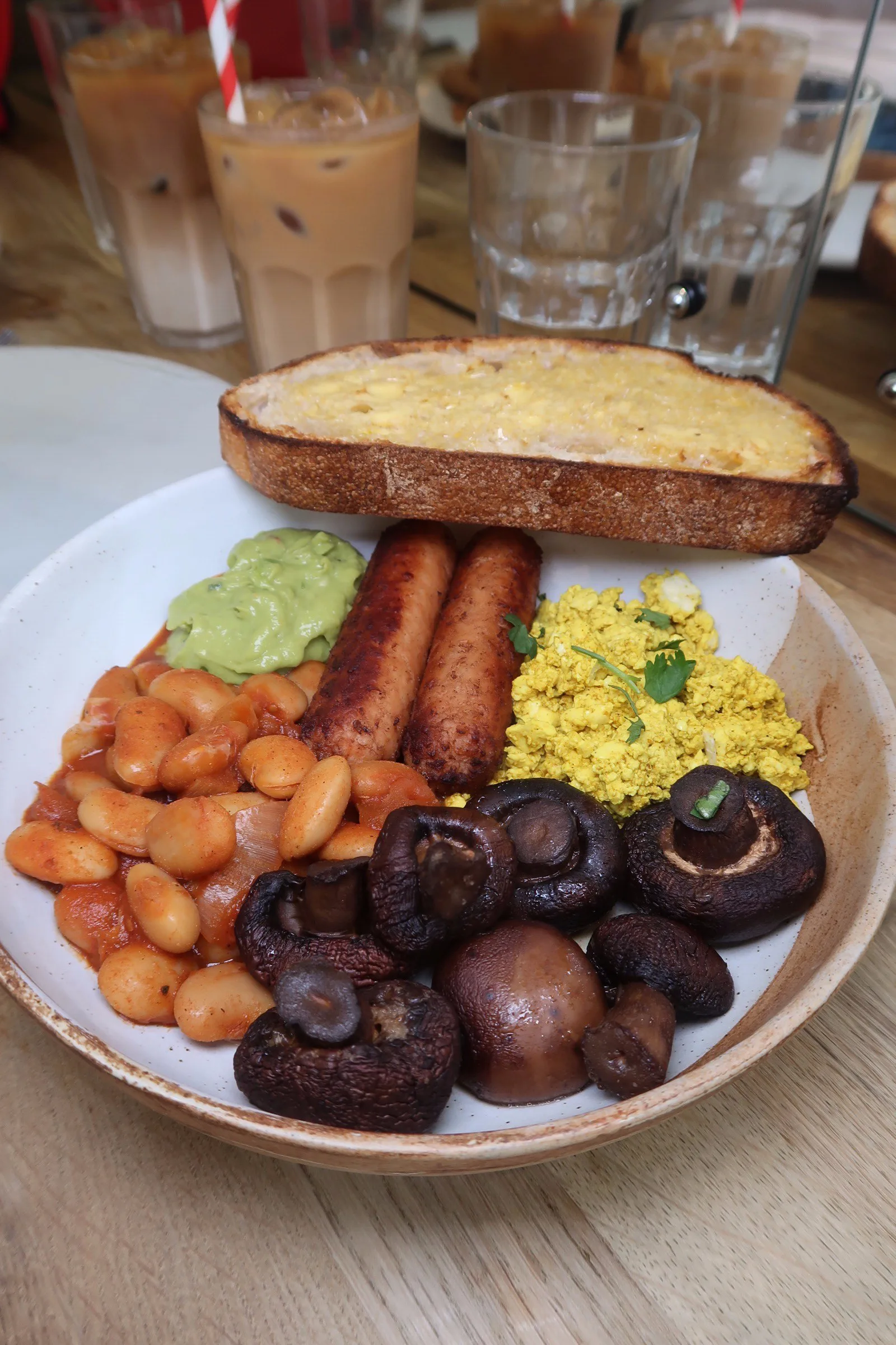 - Full Breakfast with sausages, homemade beans, tofu, mushrooms, avocado & toast – £9