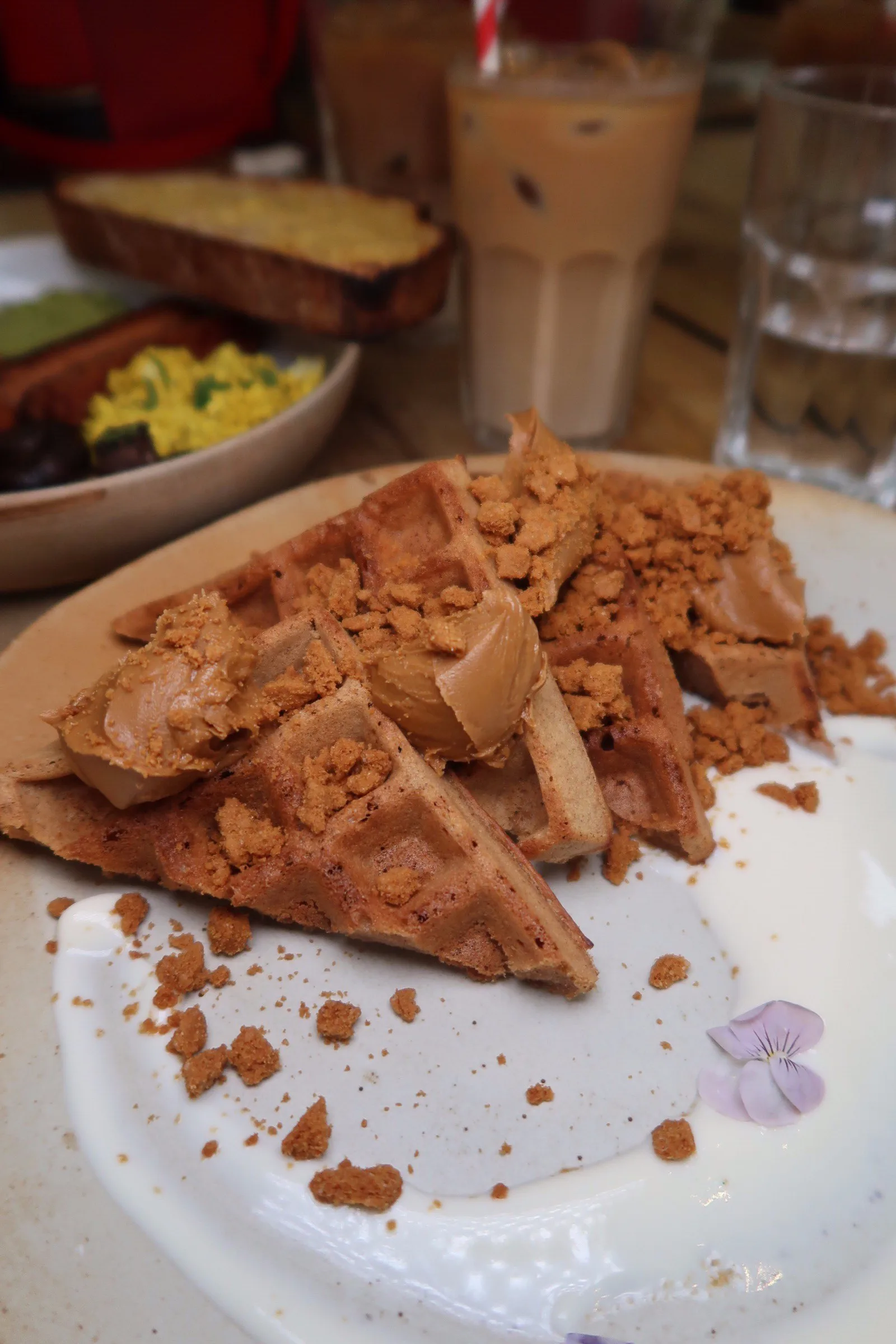 - Cinnamon Waffle with biscoff drizzle, biscoff crumb & vanilla ice cream (they were out of ice cream so we had vanilla yoghurt instead) – £6.50
