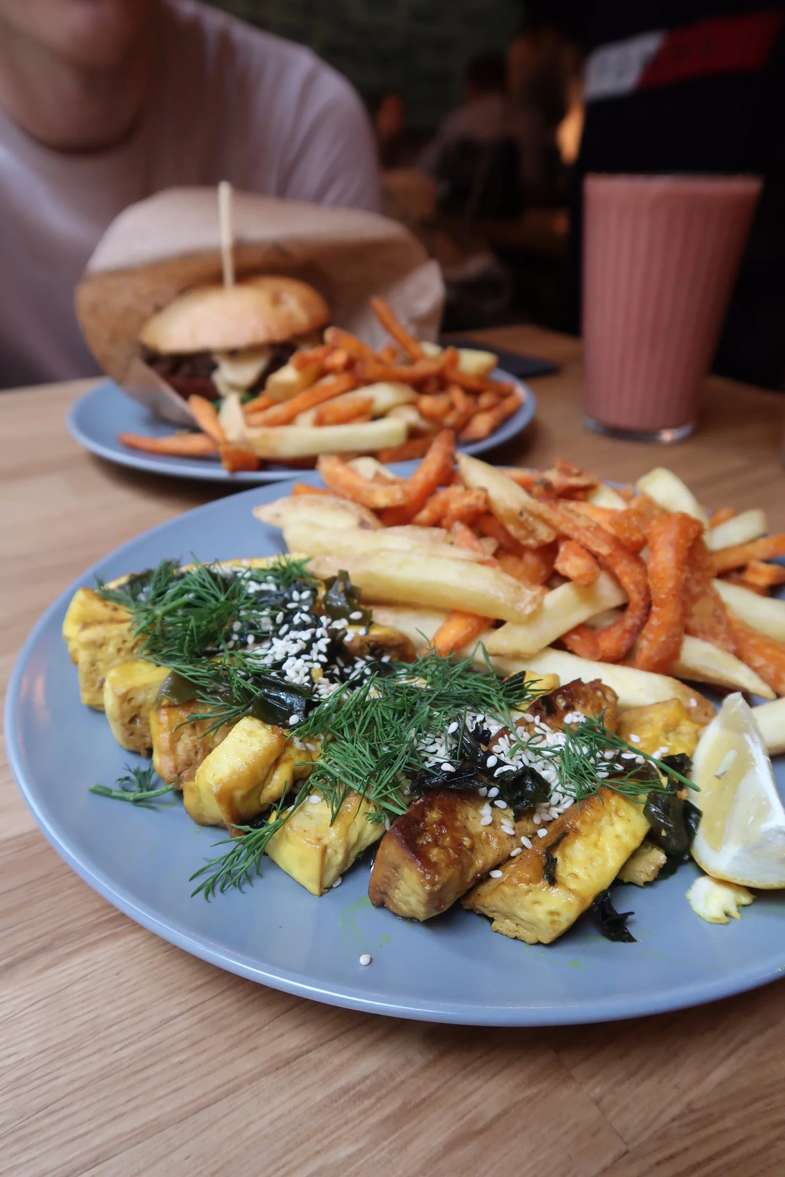 • Nofish & Chips – Fried tofu with wakame seaweed, Tamara, turmeric, sesame seeds & dill with sweet potato & potato fries – 139Kč (£4.50)