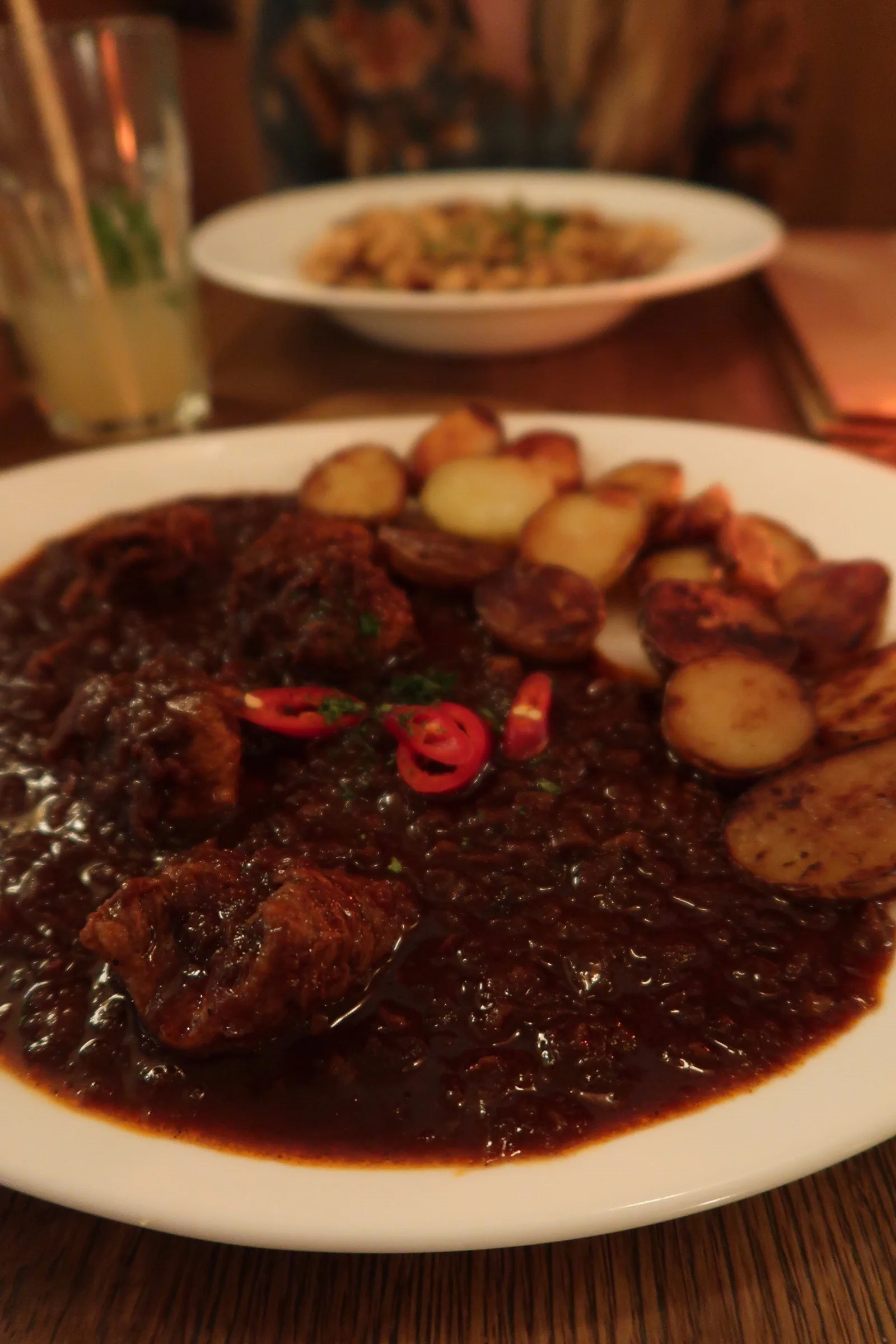 • Spicy goulash – I really liked the texture but it was a bit too salty for me. The seitan reminded me of lamb in that in melted in my mouth. The sauce was quite rich and there was perhaps a bit too much sauce for the dish but I did enjoy it. Perhaps it needed a few more potatoes to soak up that sauce!